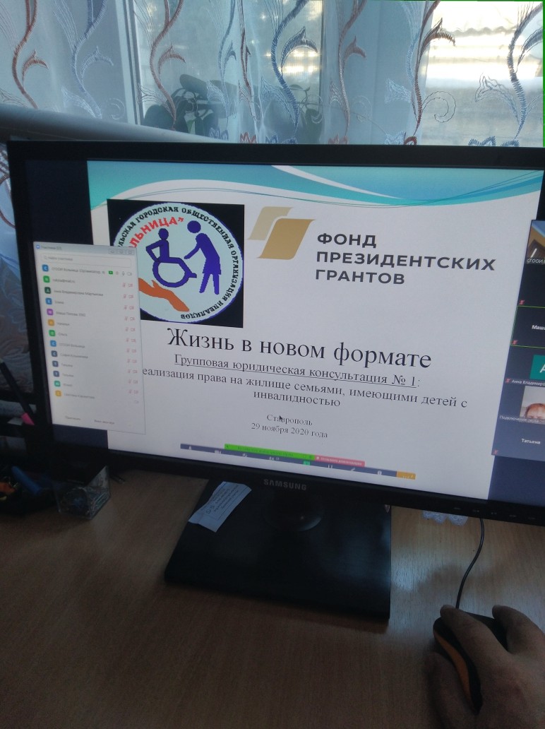 29 ноября 2020 года в рамках социально значимого проекта "Жизнь в новом формате", реализуемого с использованием гранта Президента Российской Федерации, предоставленного Фондом президентских грантов, юристом Ставропольской городской общественной организации инвалидов "Вольница" Олегом Ковалевым была проведена групповая юридическая консультация на тему: "Реализация права на жилище семьями, имеющими детей с инвалидностью".